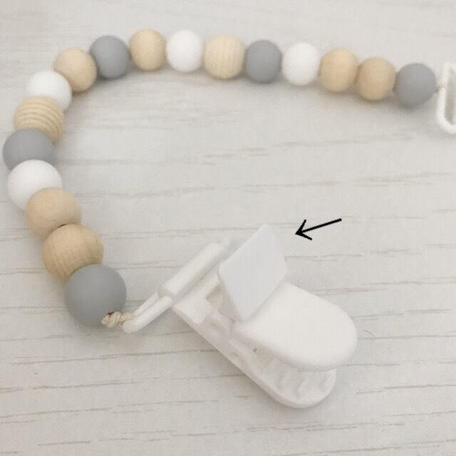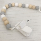 お子様が口に入れても安心なシリコンビーズと無塗装のウッドビーズを使用しています。